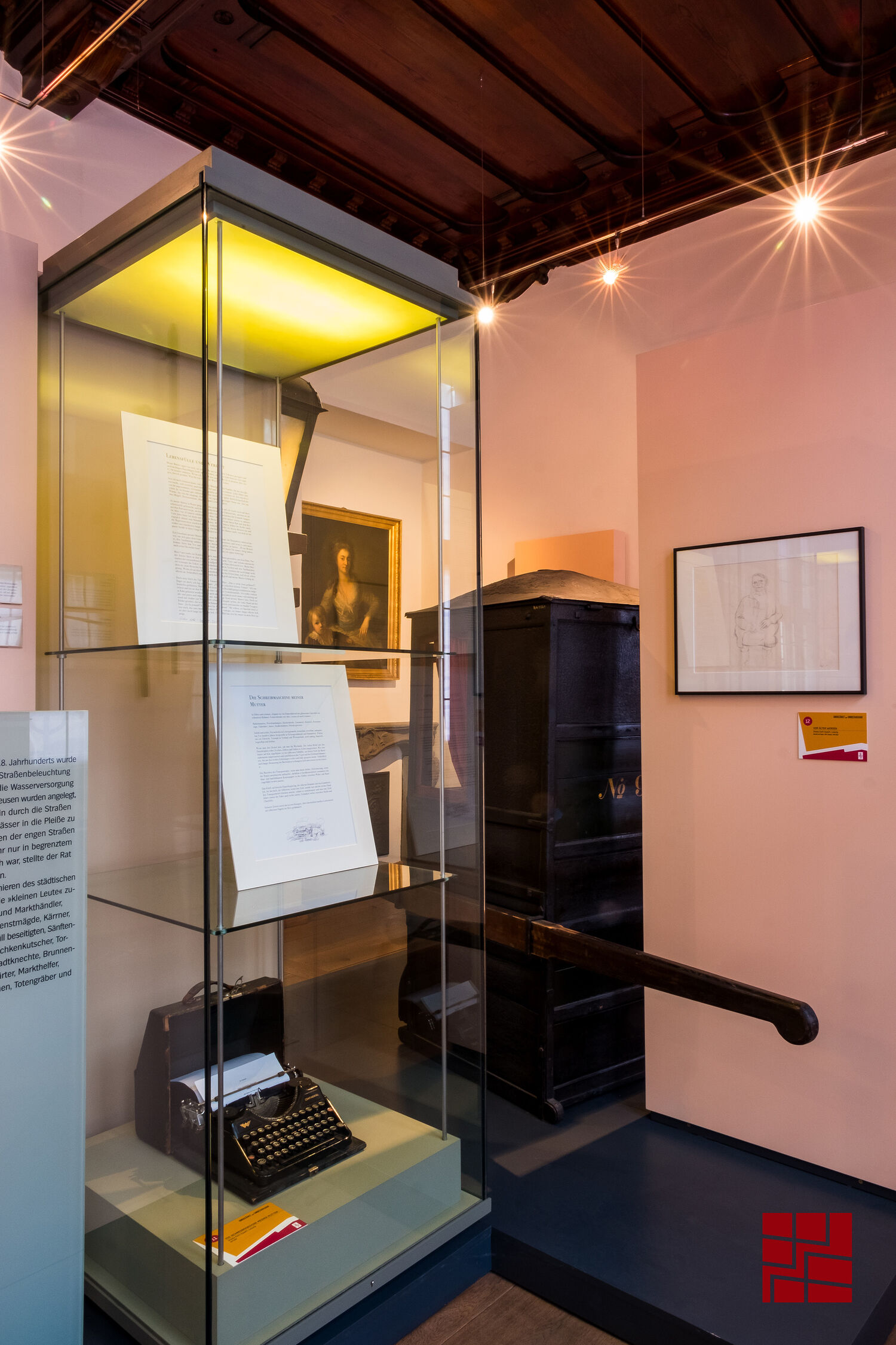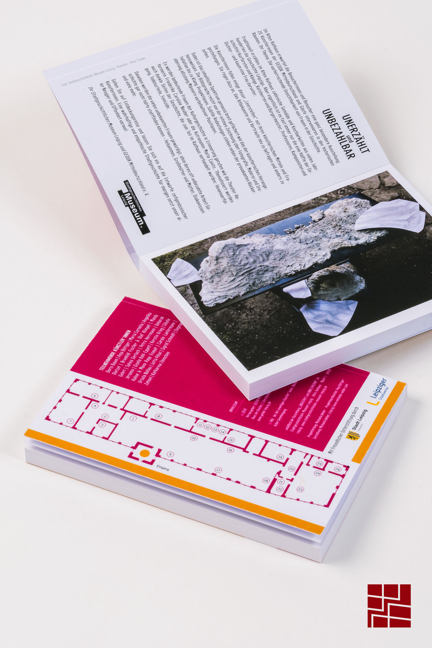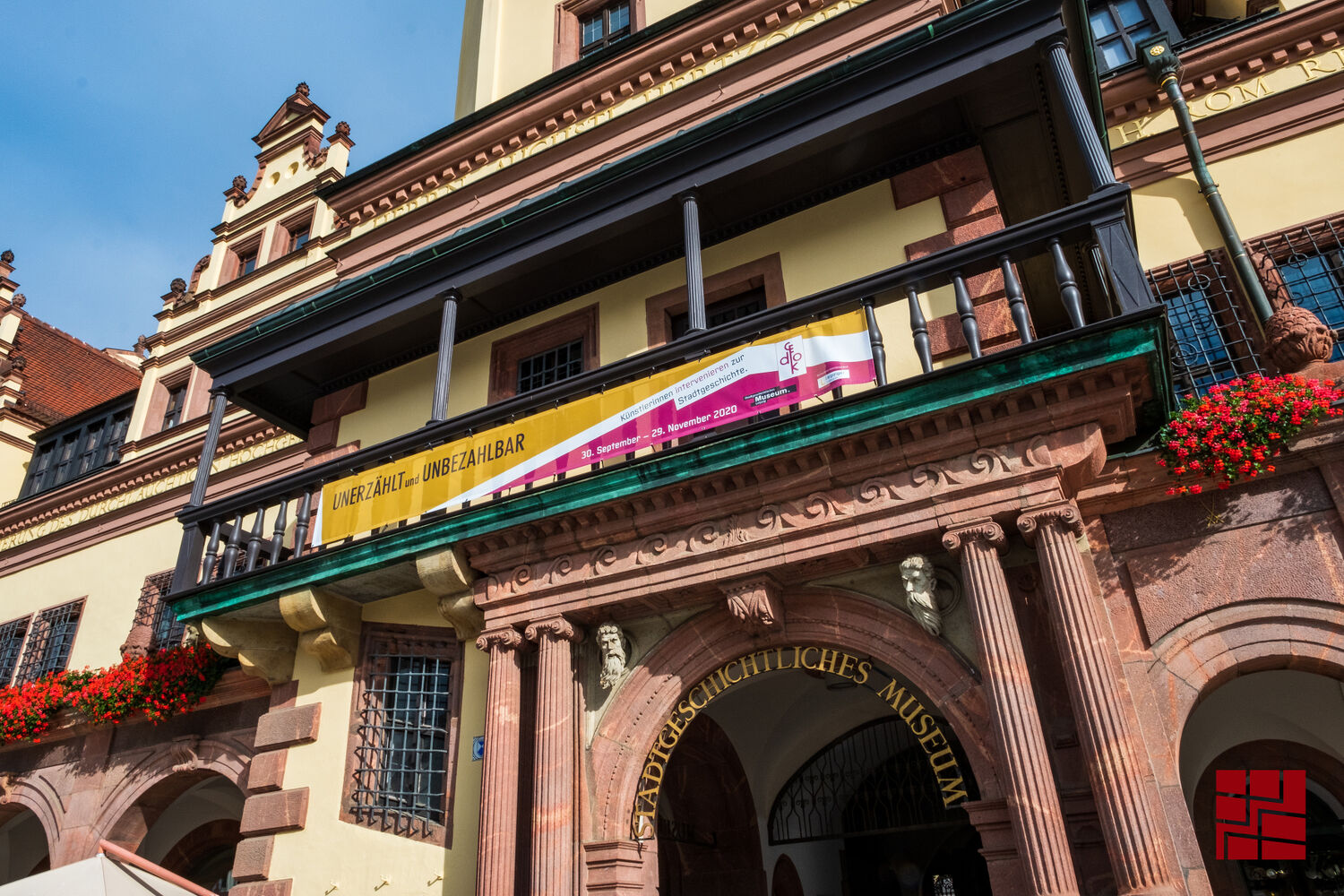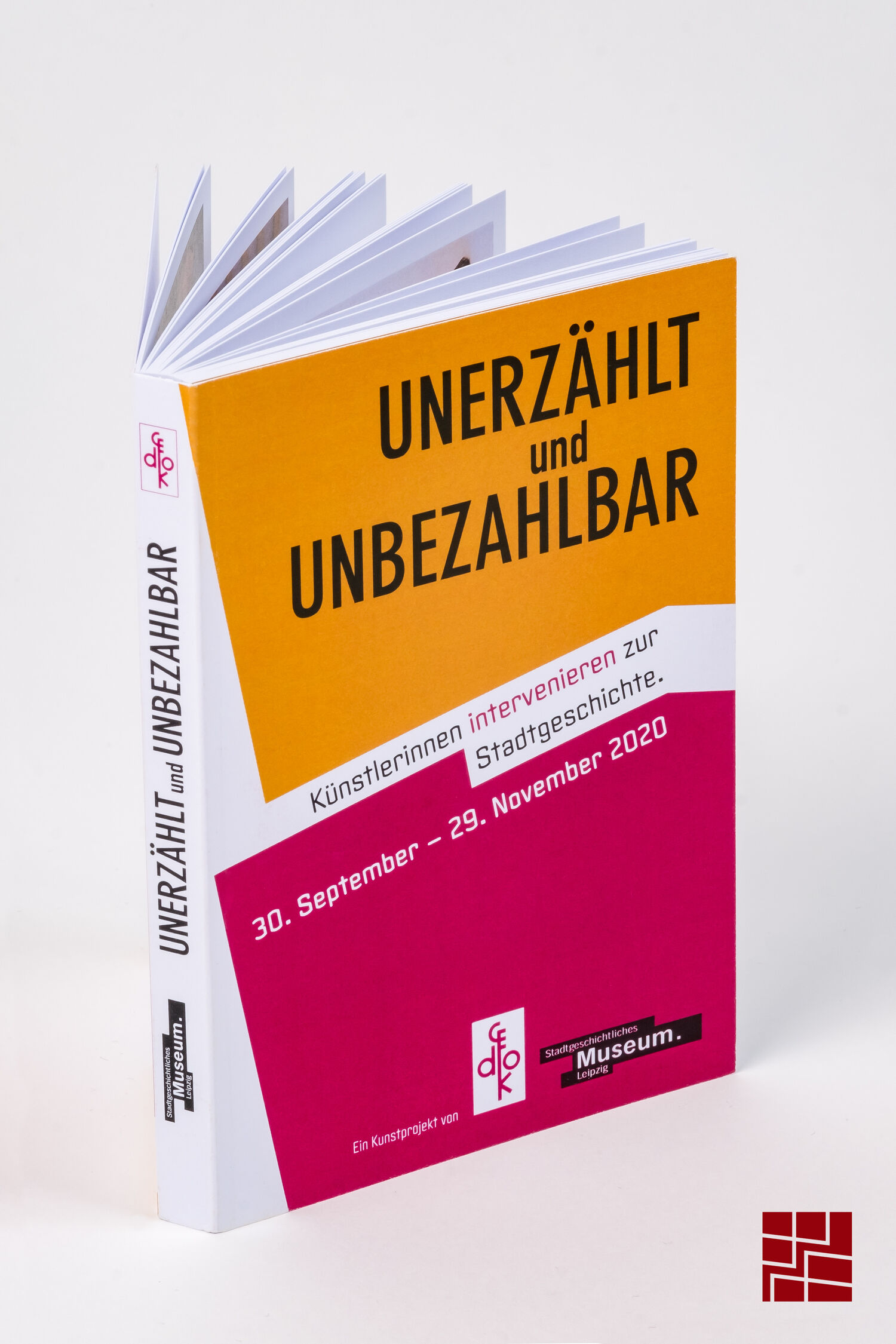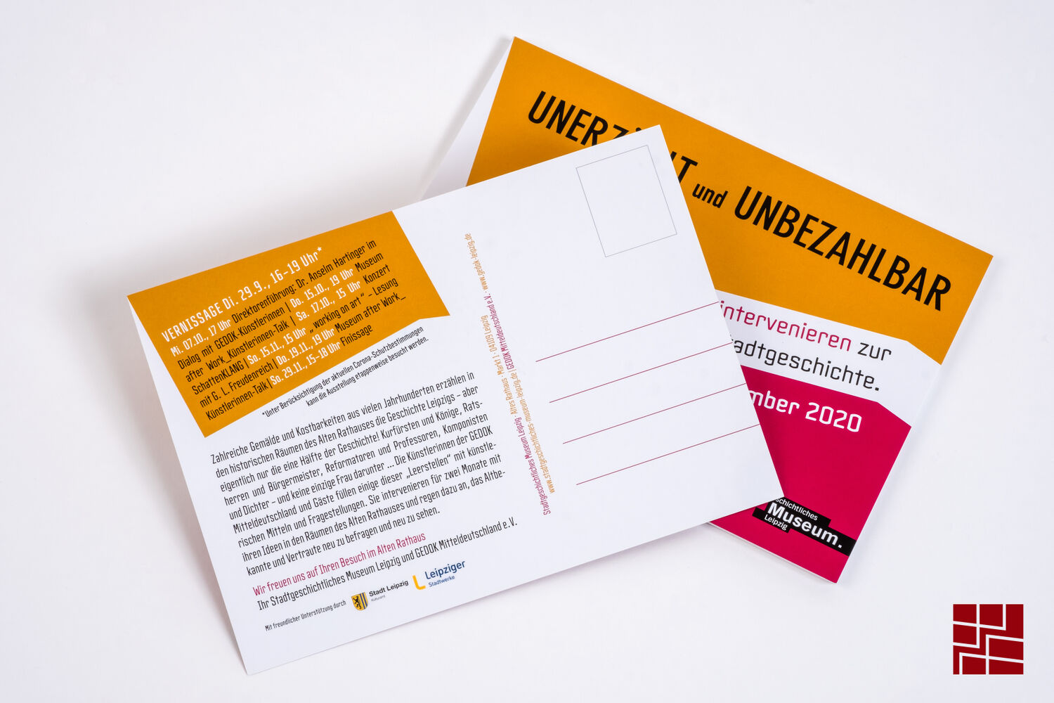 In den historischen Räumen des Alten Rathauses erwarten die Besucher:innen unzählige Exponate verschiedenster Couleur sowie Gemälde und andere kostbare Kunstwerke aus vielen Jahrhunderten. Sie erzählen die Geschichte der Stadt, von Kurfürsten und Königen, Ratsherren und Bürgermeistern, Reformatoren und Professoren, Komponisten und Dichtern – doch nur von sehr wenigen Frauen. GEDOK Mitteldeutschland e.V. rief deshalb Künstlerinnen aller Sparten auf, sich mit der Sichtbarkeit von Frauen in der Stadtgeschichte künstlerisch auseinanderzusetzen. Für die daraus resultierende Ausstellung wurde ein Corporate Design entwickelt, welches auf alle benötigten Elemente übertragen wurde. Das Thema der Intervention wurde mit der Wahl zweier serifenloser Schriften – einer sachlich geprägten und einer trotz Abrundungen eckig wirkenden –, der gedanklichen Unterbrechung der bisherigen Sicht durch Ecken und Kanten sowie durch zwei markante und damit weithin sichtbare Farben gestalterisch umgesetzt.