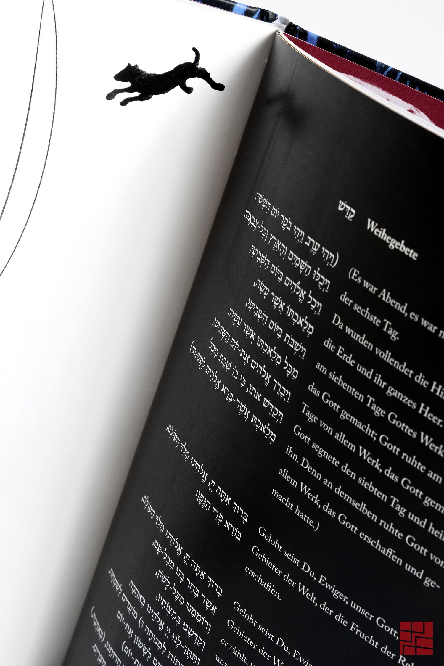 Künstlerbuch der Größe 21 x 27 cm, Hardcover, 96 Seiten, 37 Illustrationen, deutsch und hebräisch.