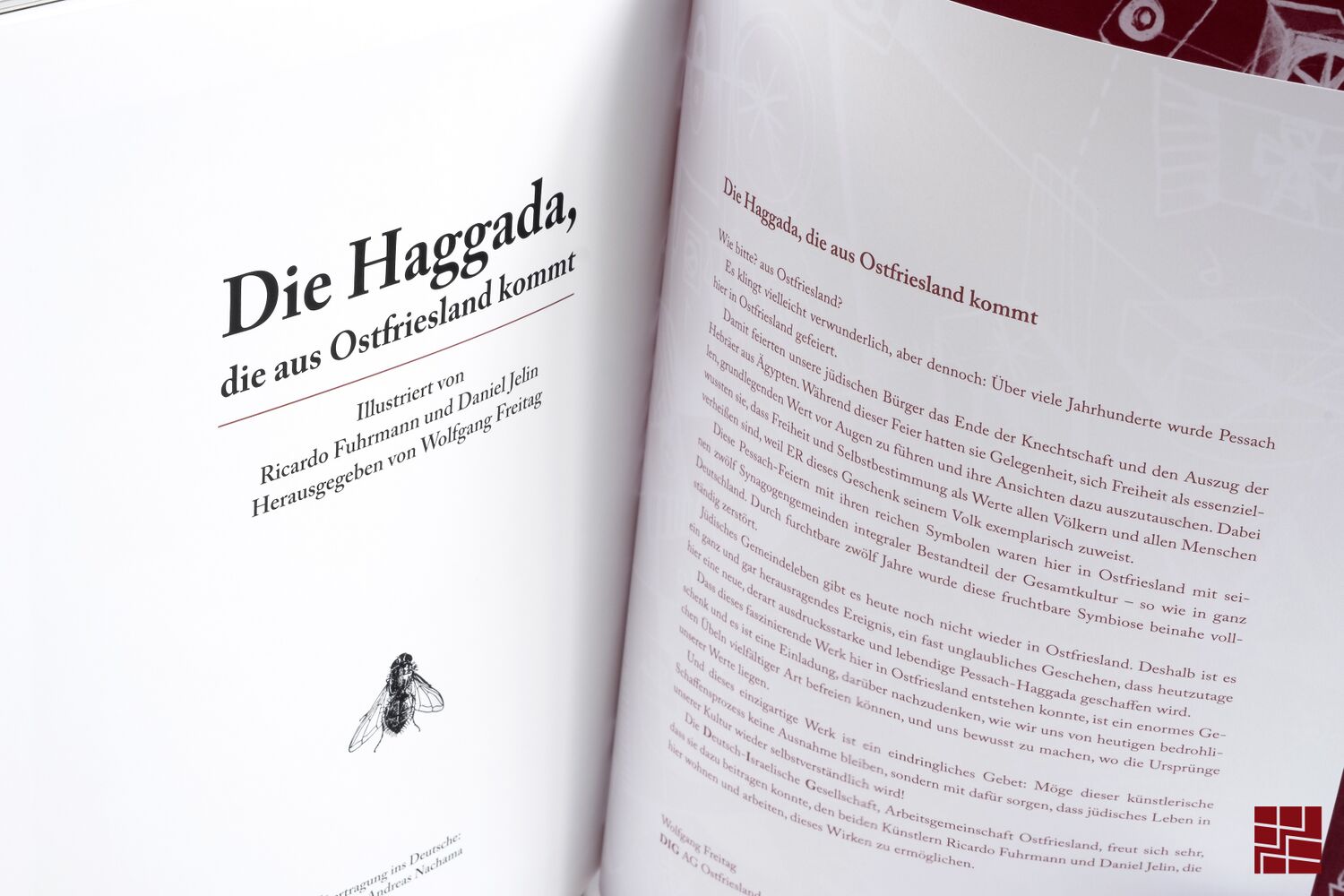 Die Haggada wurde in dieser Ausgabe von den aus Argentinien stammenden Künstlern Ricardo Fuhrmann und Daniel Jelin illustriert, die in Ostfriesland leben.